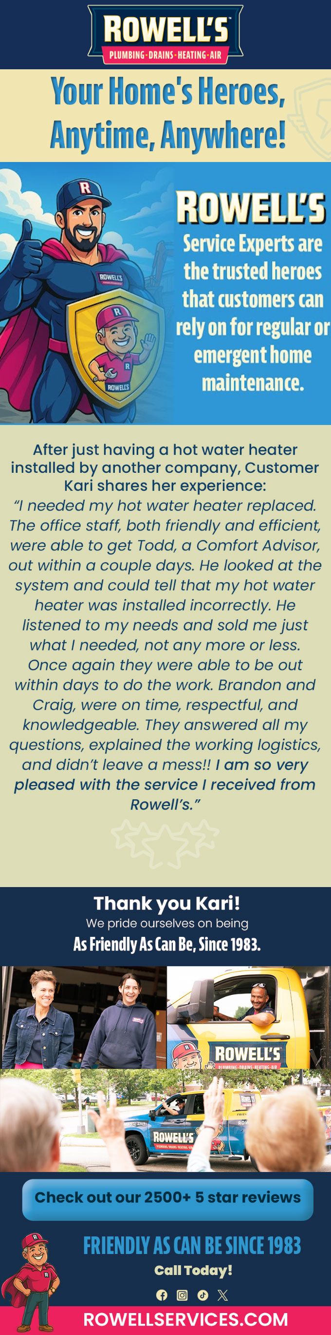 Rowell's Service Experts are the trusted heroes that customers can rely on for regular or emergency home maintenance.