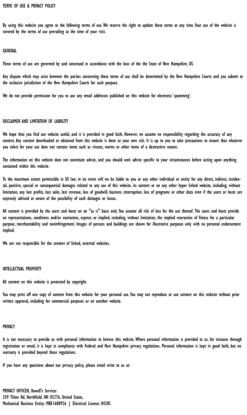 "Friendly As Can Be Since 1983!" When you need help with your plumbing, drains, heating, cooling or electrical in Andover, you can always rely on Rowell's Services! Call us now or book online!
